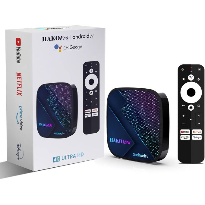HAKO 11 Android TV Box 4K Ultra HD supports Dolby digital plus, bringing you a more extreme viewing and listening experience. It is certified by Netflix, Google, Youtube, prime video, and Disney+ and is compatible with thousands of apps. 2G RAM & 16G ROM allow you to download apps as you like, without worrying about insufficient memory, and easily watch any movies and TV series you want. 4K ultra HD resolution for a more detailed and vivid image for you to immerse yourself in