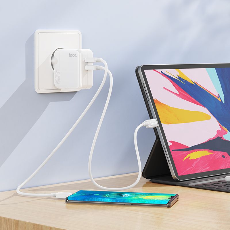The PD35Watts High Power Dual Type-C Port Charger by Hoco, with the product model C110A, is a cutting-edge charging accessory designed to meet the ever-increasing power requirements of today's electronic devices. This charger boasts dual Type-C ports, offering both high-speed charging and universal compatibility.