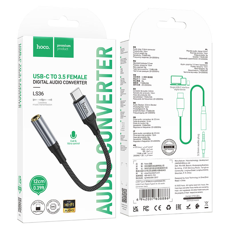Explore seamless audio connectivity with the Hoco LS36 Type C To 3.5 Audio Converter. Crafted with a durable combination of metal and braided material, this converter ensures reliability in all situations. With a compact length of 12cm and a lightweight design weighing only 6g, it's ideal for on-the-go use. The audio jack, a standard 3.5mm, ensures compatibility with various devices. Notably, the converter supports both microphone and wire control, offering a comprehensive solution for your audio needs. Trust in the quality construction of Hoco LS36 for a dependable Type C to 3.5 audio conversion experience, combining functionality and durability in a sleek design.