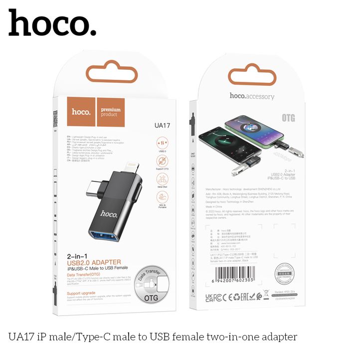 -High-Quality Material: The HOCO 2-in-1 USB2.0 Adapter is made of a durable and sturdy Metal Shell which ensures a long-lasting performance.