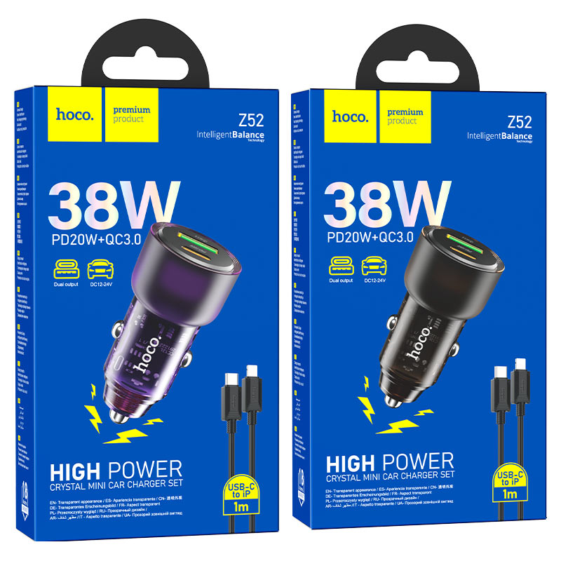 Hoco Z52 38W Car Charger Set C To iPhone Transparent Black