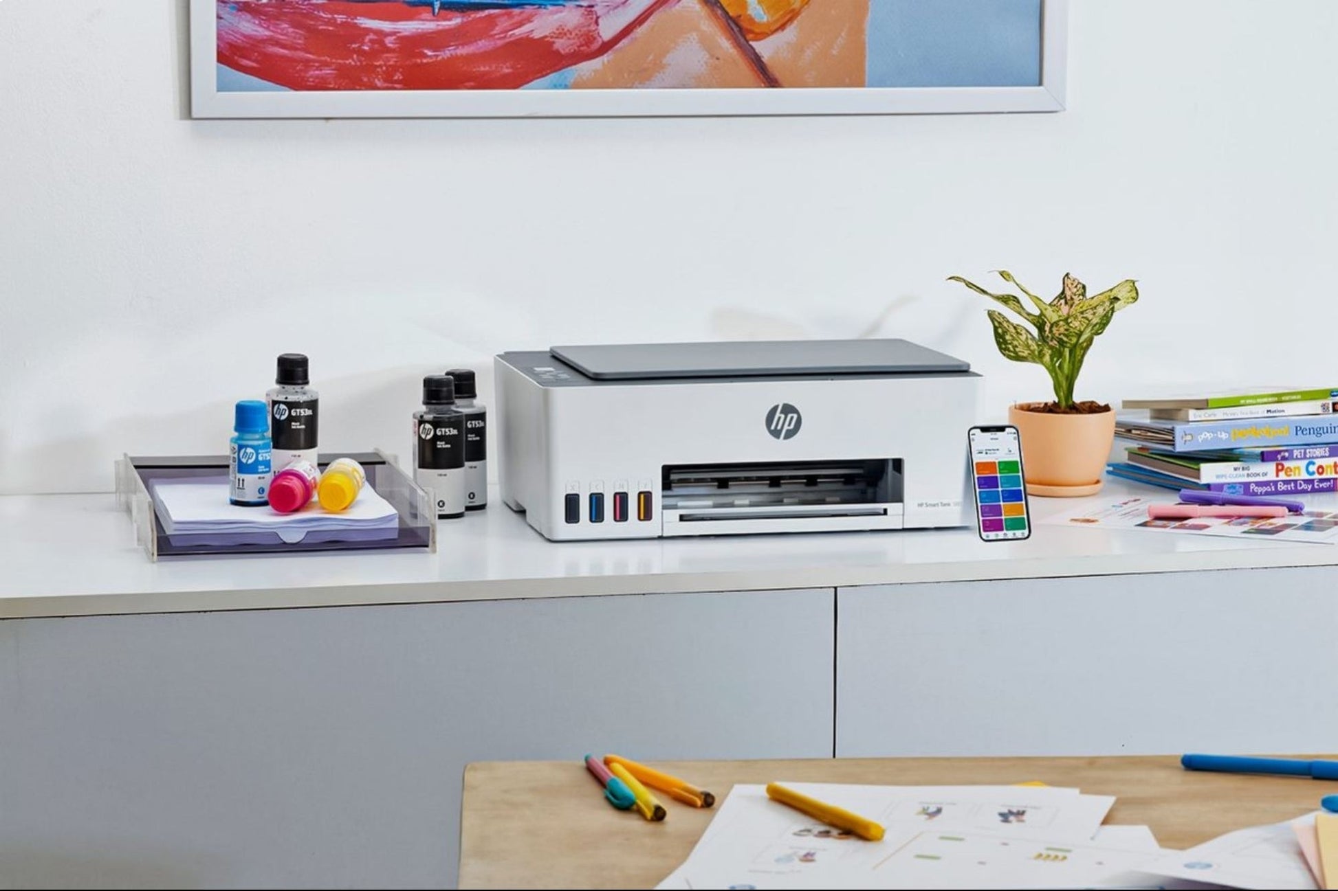 Enjoy everyday reliability with the HP Smart Tank 580 All-in-One Printer that delivers HP quality you expect and savings that are anything but expected