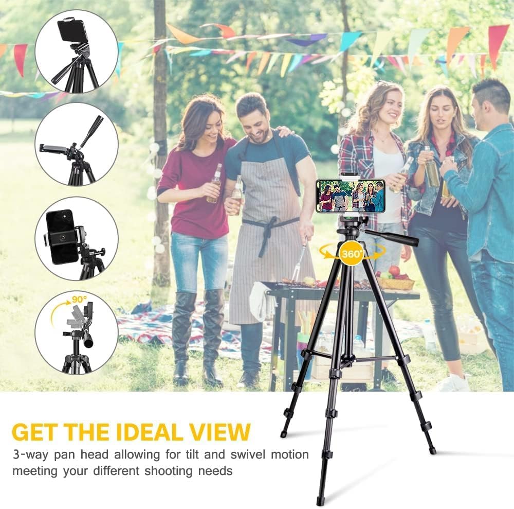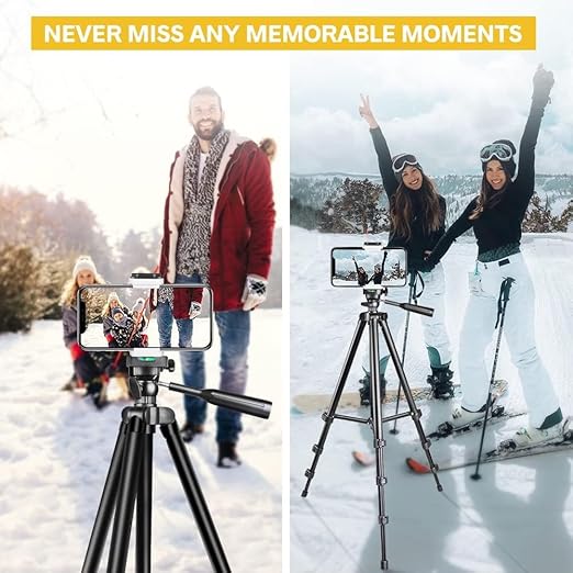 The Koosda Extendable Tripod Stand With Remote and Phone Clip is a versatile and convenient tool for capturing the perfect shot. With a maximum height of 50 inches