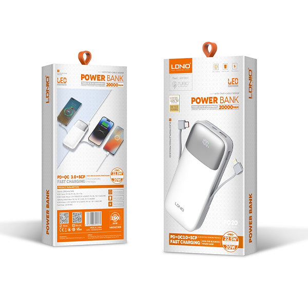The LDNIO PQ20 is a versatile and powerful 20,000mAh power bank that offers 22.5W fast charging capabilities, making it ideal for users who need reliable and quick charging on the go. Below are the key specifications and features: