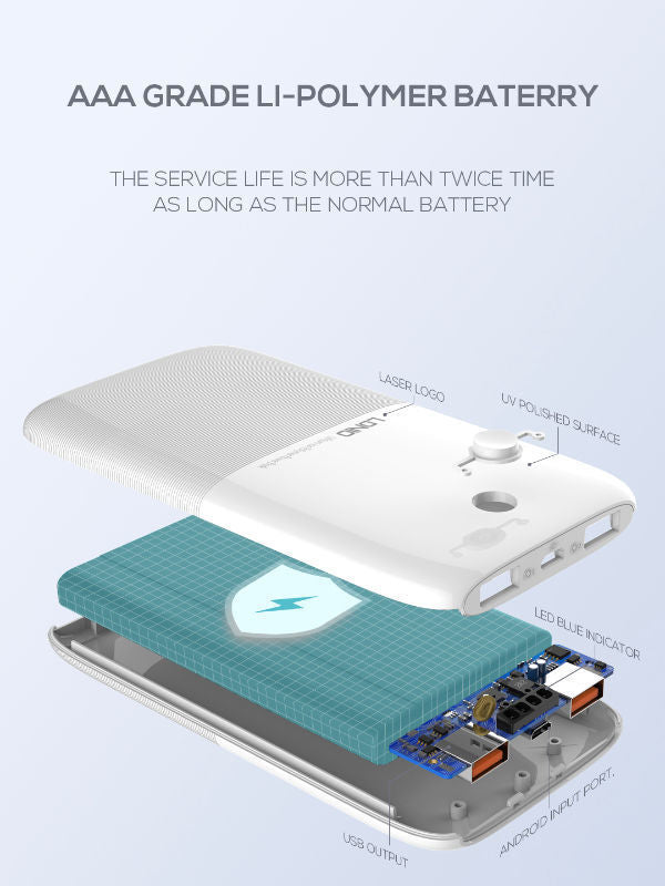 This LDNIO power bank is specially designed to prevent your smartphone from running out of power while traveling. Its compact and lightweight structure fits in your bag and lets you charge your device without the need for a wall power socket.