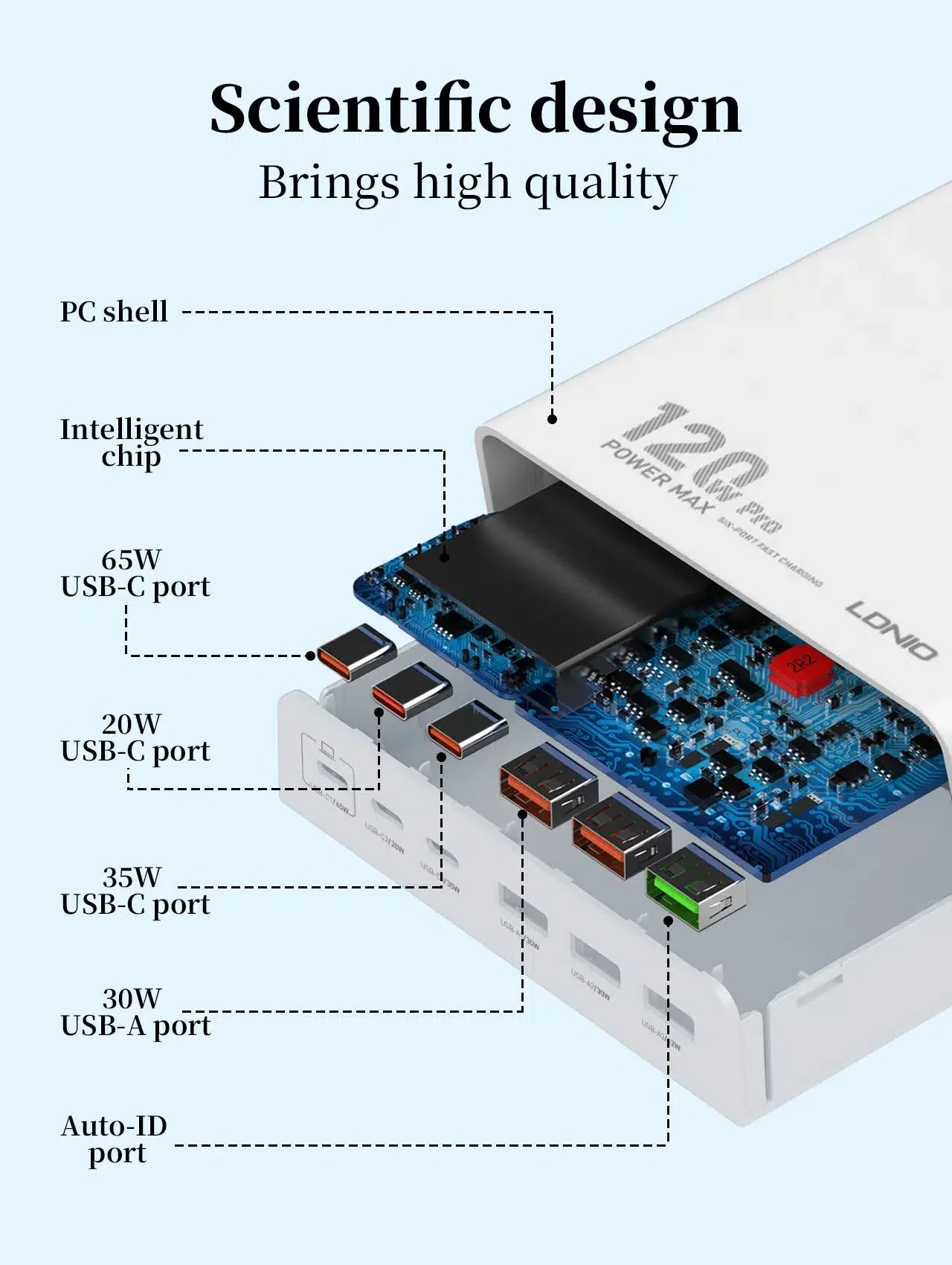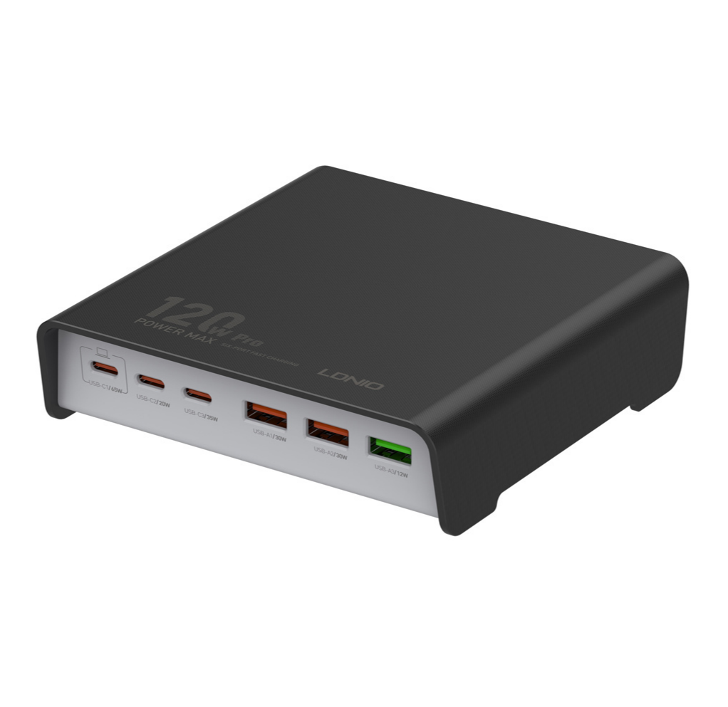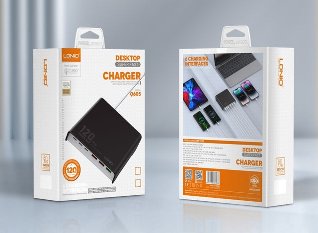 LDNIO PD 120W Super Fast Charger 3 USB-C + 3 USB-A Ports Adapter Support Laptop Tablet Charge multi-ports Desktop Charger Q605
