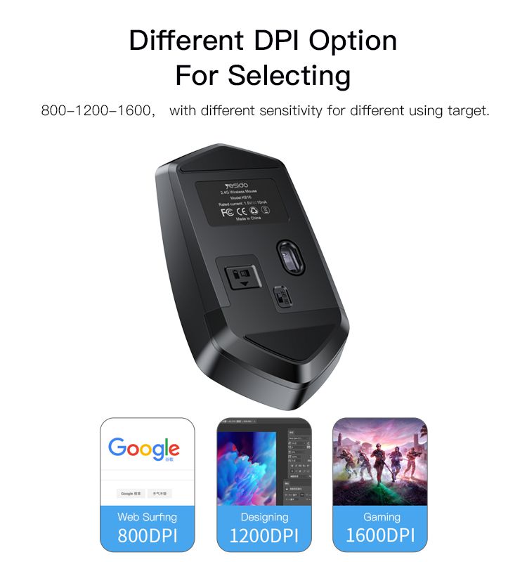 - Responsive Optical Tracking: Equipped with high-precision optical tracking technology, the YESIDO KB16 Wireless Mouse delivers smooth and accurate cursor control on a variety of surfaces, making it suitable for both office work and gaming.