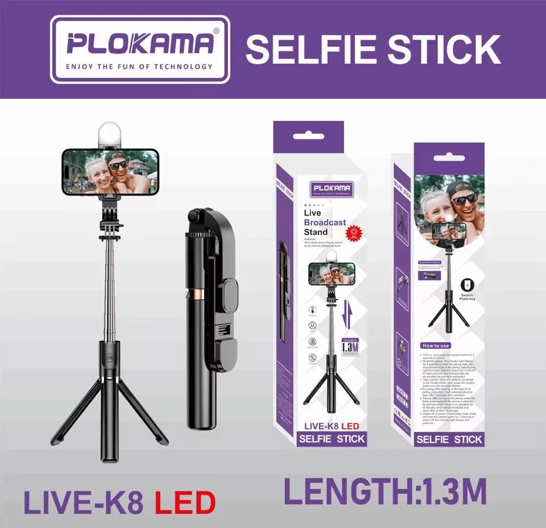 Plokama LIVE-K8 LED Multifunctional Selfie Stick -1.3m