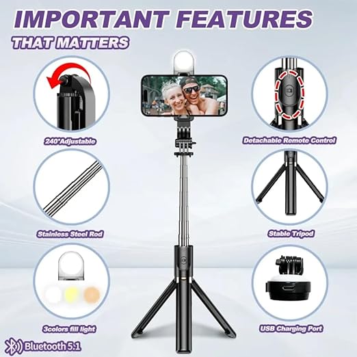 Elevate your content creation with the Plokama Live Broadcast Stand. Designed for vloggers, influencers, and anyone who loves capturing moments, this versatile tool combines a selfie stick and tripod with a built-in LED light, ensuring you always have perfect lighting for your photos and videos.
