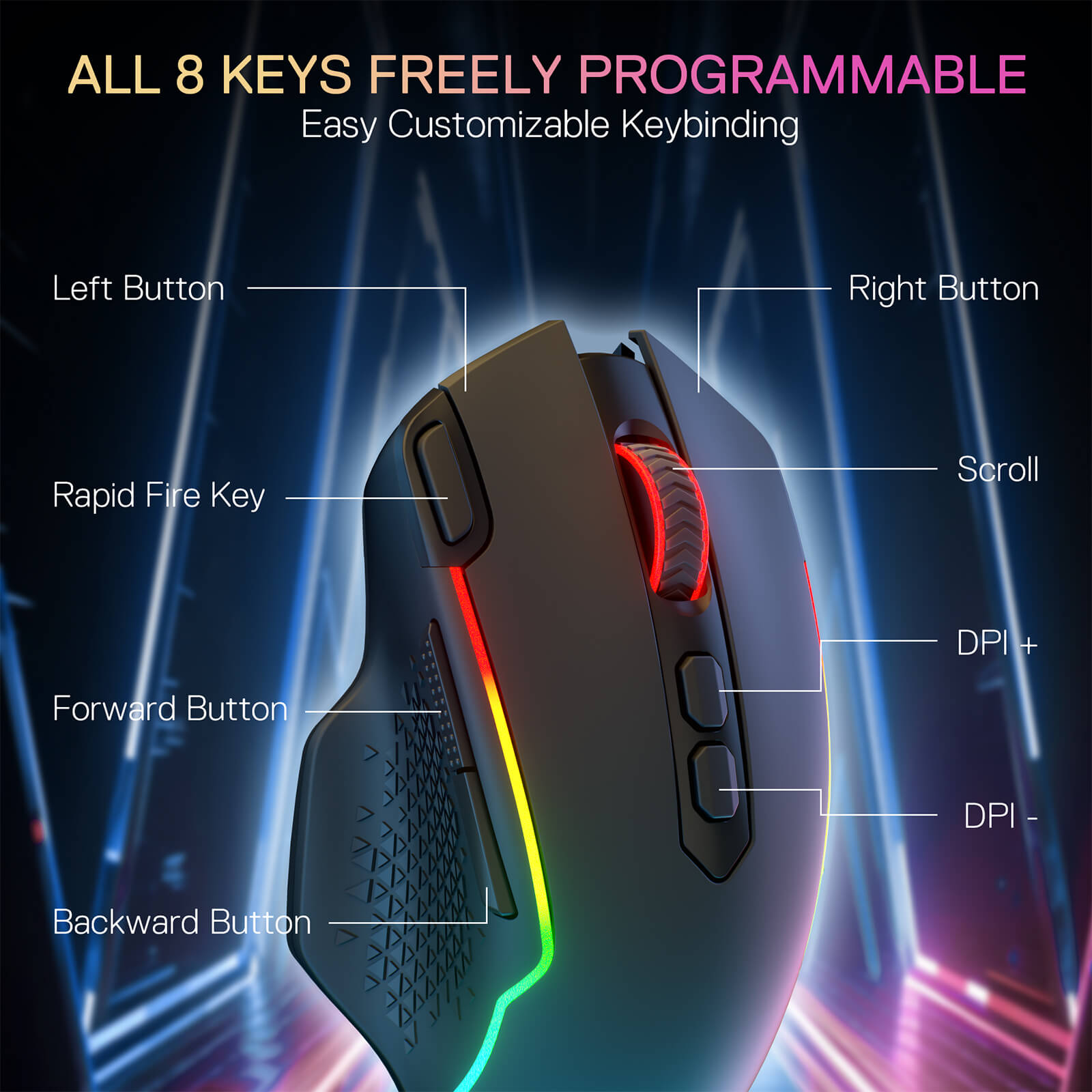 Redragon M810 TAIPAN PRO 10000DPI 8-Button Wireless RGB Gaming Mouse - Black