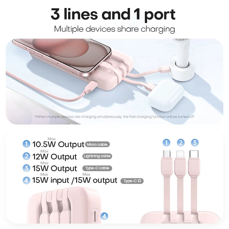 - 3 Built-in Micro USB/Lightning/Type-C