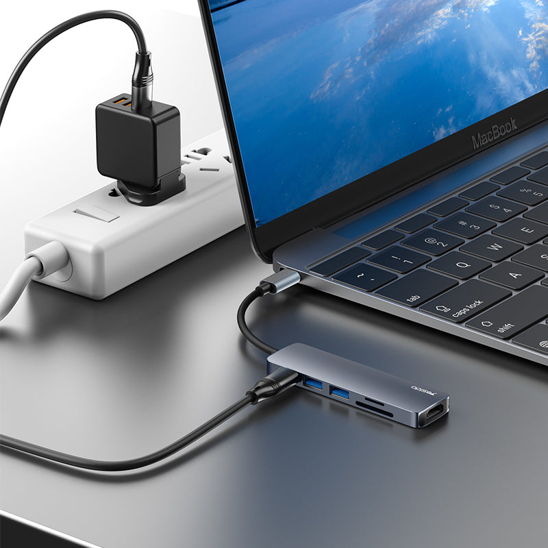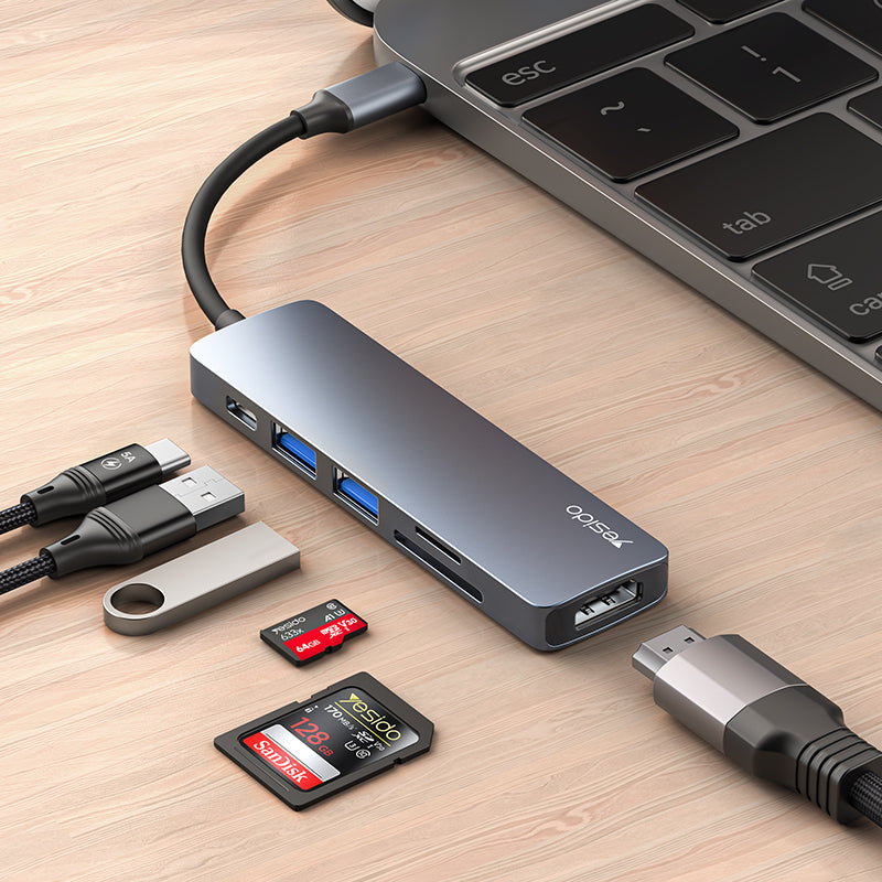 This multi-functional USB-C dock station hub supports connecting your device with HDMI interface display such as HDTV, projectors, LCD displays, etc. It is compatible with a USB Type-C interface for smartphones, tablets, iPads, laptop, Macbooks, PCs, and computers. It supports videos and sounds from computers, tablets, and mobile phones on display devices. The high-speed USB port is capable of fast-speed data transfer.