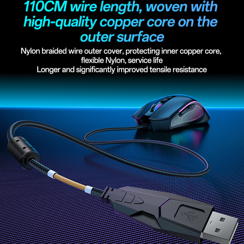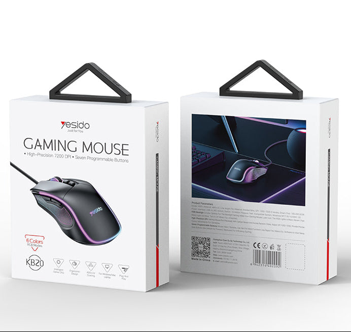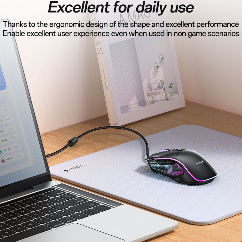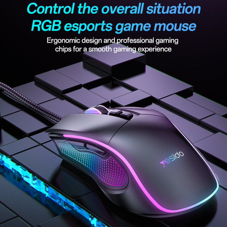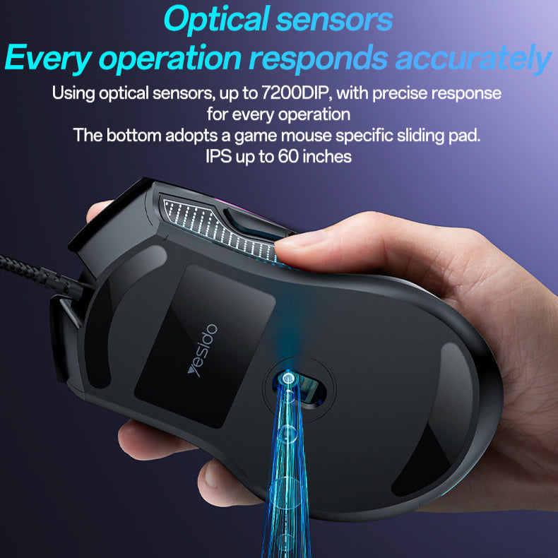 Yesido Yesido Max 7200DIP 110CM Length USB Wired Connection RGB Colorful Breathing Light Gaming Mouse.