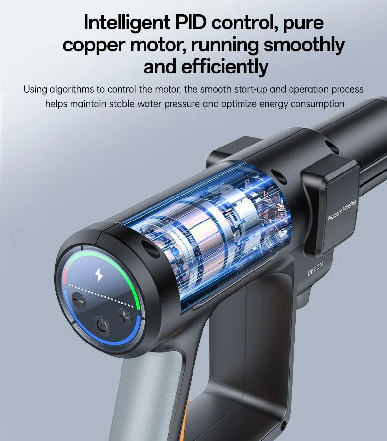- 【LED Display and Dual-Mode Adjustment】Clear LED screen shows battery level and pressure mode, easily adjustable between high and low settings for versatile cleaning.