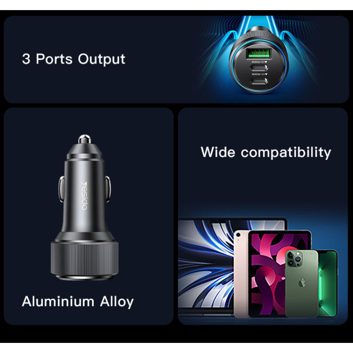Introducing the Dual Port Car Charger, a cutting-edge solution designed to power up your devices with unparalleled speed and efficiency on the road. Equipped with both a Type-C port and a USB (USB3.0) port, this charger offers the ultimate convenience, allowing you to charge two devices simultaneously.