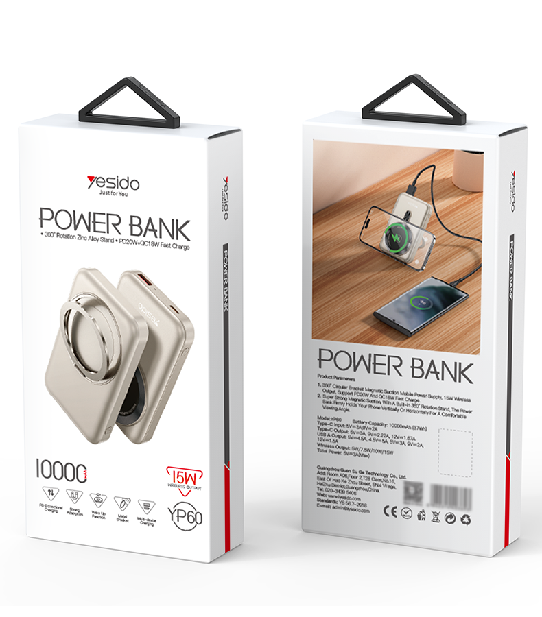 YP60 Yesido 360-Degree Rotating Bracket 15W Wireless Fast Charging Comes With A Stand Magnetic Power Bank.