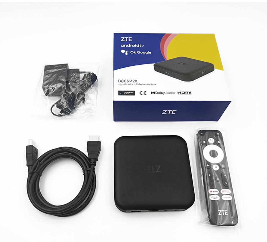 ZXV10 B866V2K is a UHD STB based on Android TV platform, the version of OS is Android TV R or greater. It adopts advanced hardware and AV1/HEVC (up to 4K*2K@60fps) UHD video processor. It supports Wi-Fi 5, which provides rich services including but not limited as OTT video, online music, 3D games to the end users.